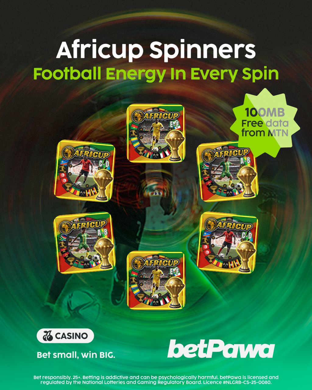 Africup Spinners brings the thrill of Africa’s biggest football tournament to the gaming world. Drawing inspiration from the tournament’s most iconic elements, the group-stage matchups, national team colours, and the fierce competition, betPawa has created an innovative, fast-paced spinner game that mirrors the highs and lows fans experience while watching their teams compete for glory.